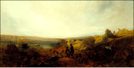 A little know Staffordshire artist who was friends with Constable. Another panoramic scene with muted warm tones, light catching the hills and central figures.