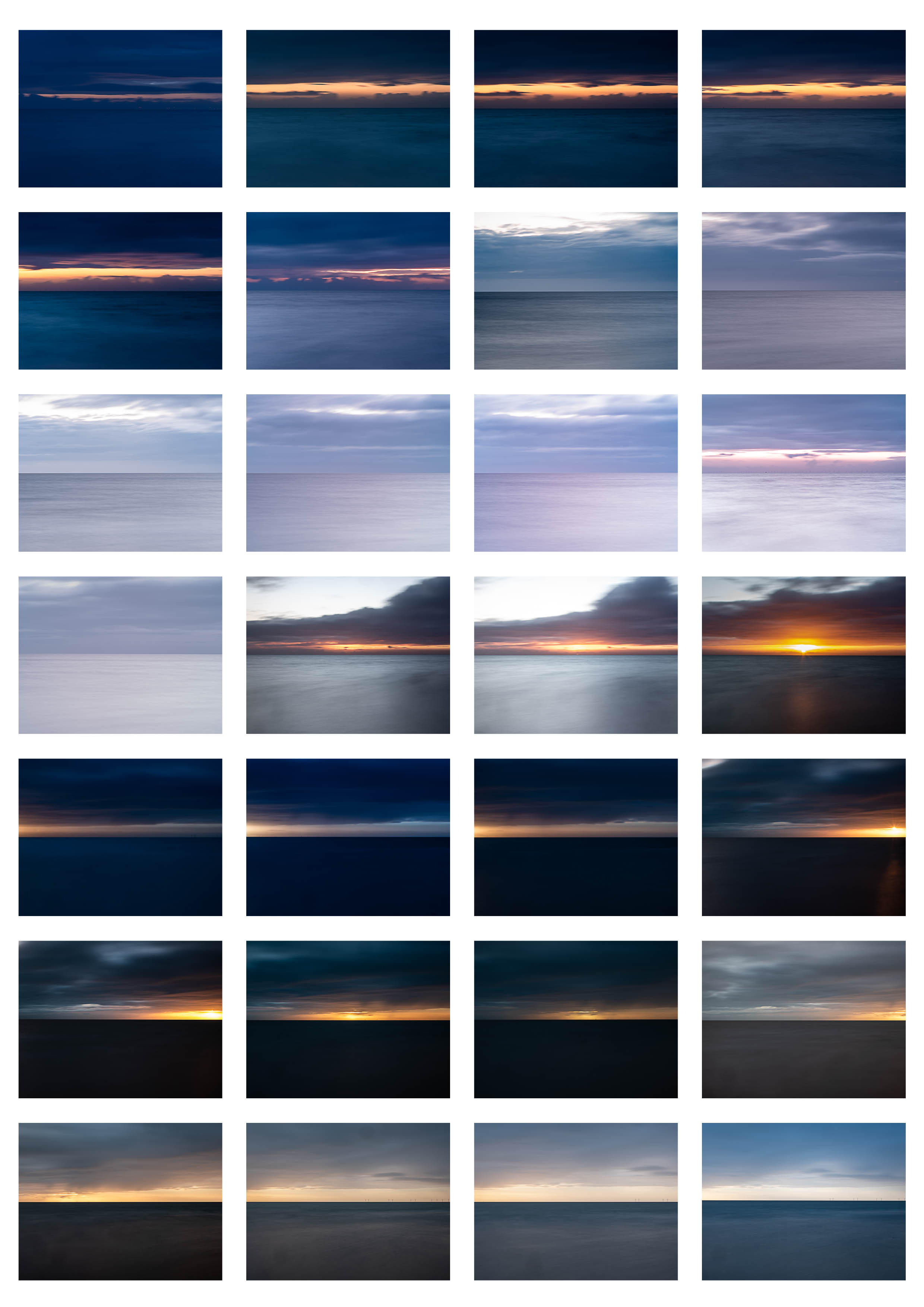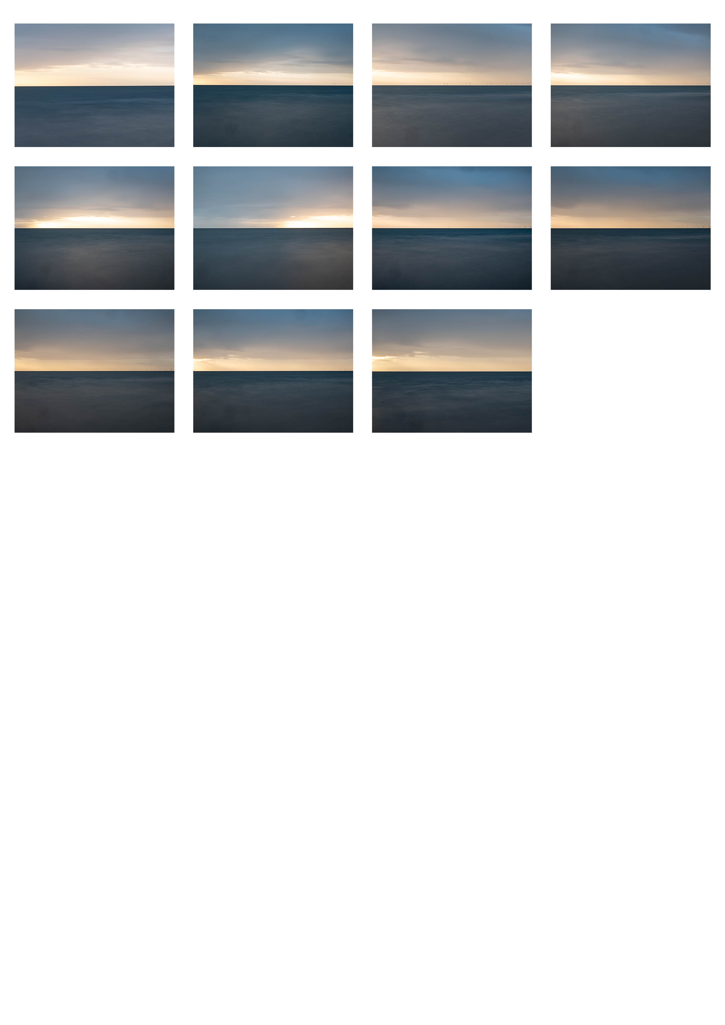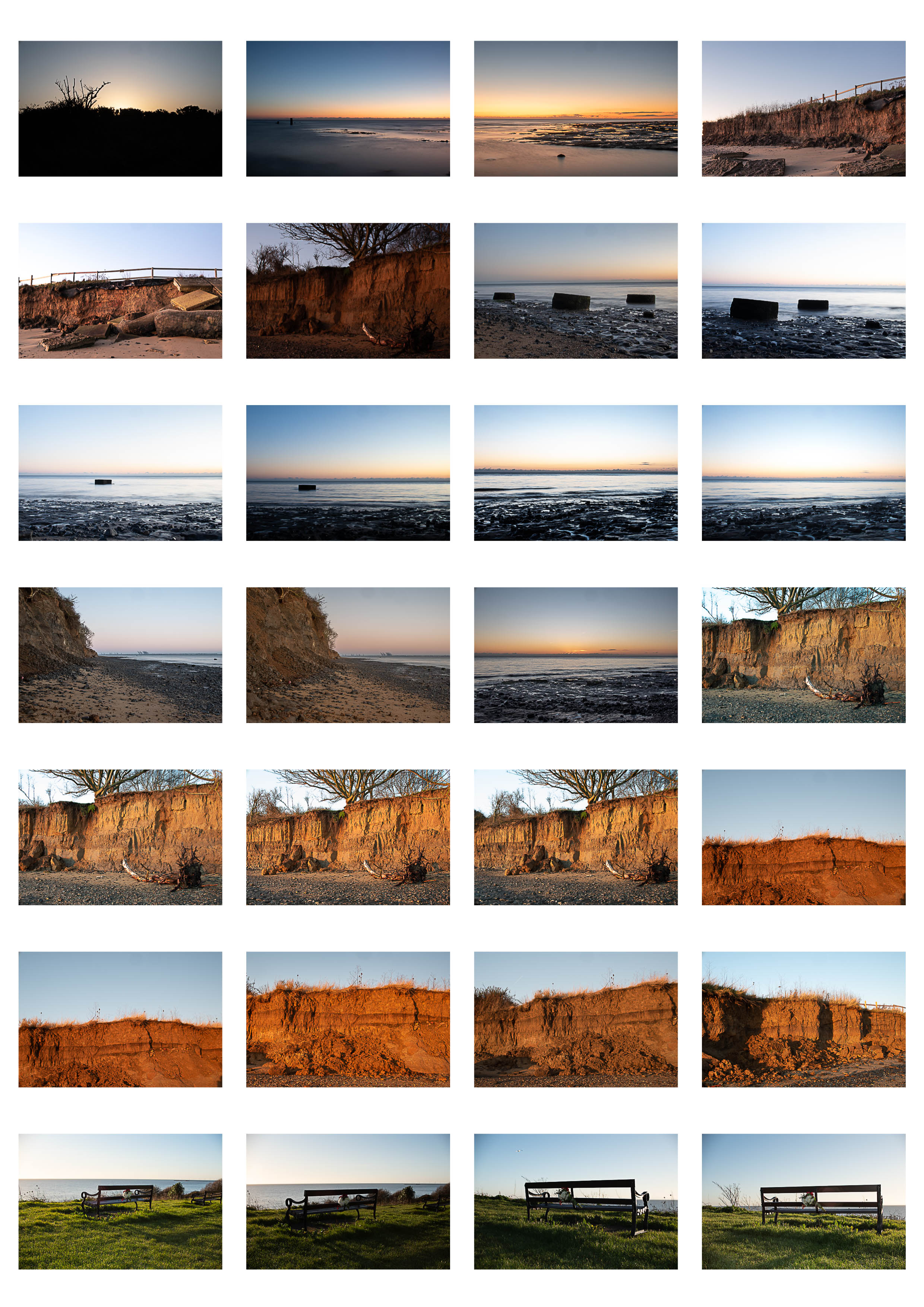 My concern about the piece is putting together a coherent set of images. Each sunrise and sunset was completely different so getting this to work visually was a challenge. My last outing was forecast as a very clear day. I’d thought to pair six sunrise and six sunset images taken on the same day. A thick band of cloud and a dirty sensor meant my images were disappointing.