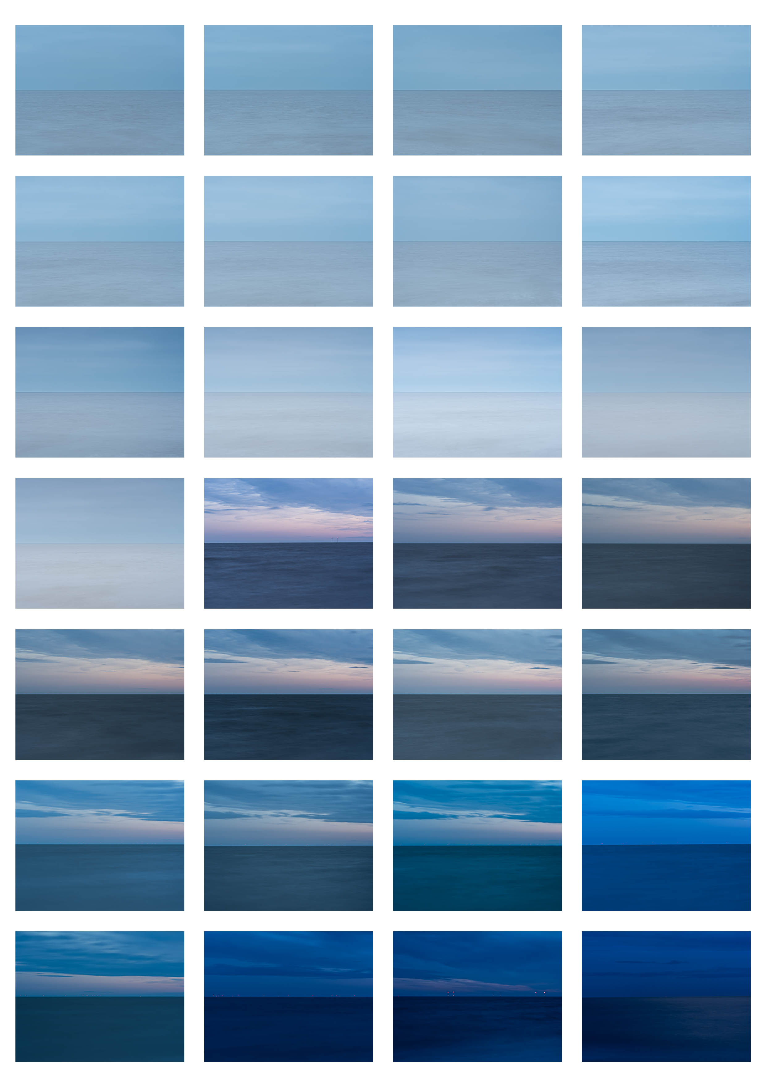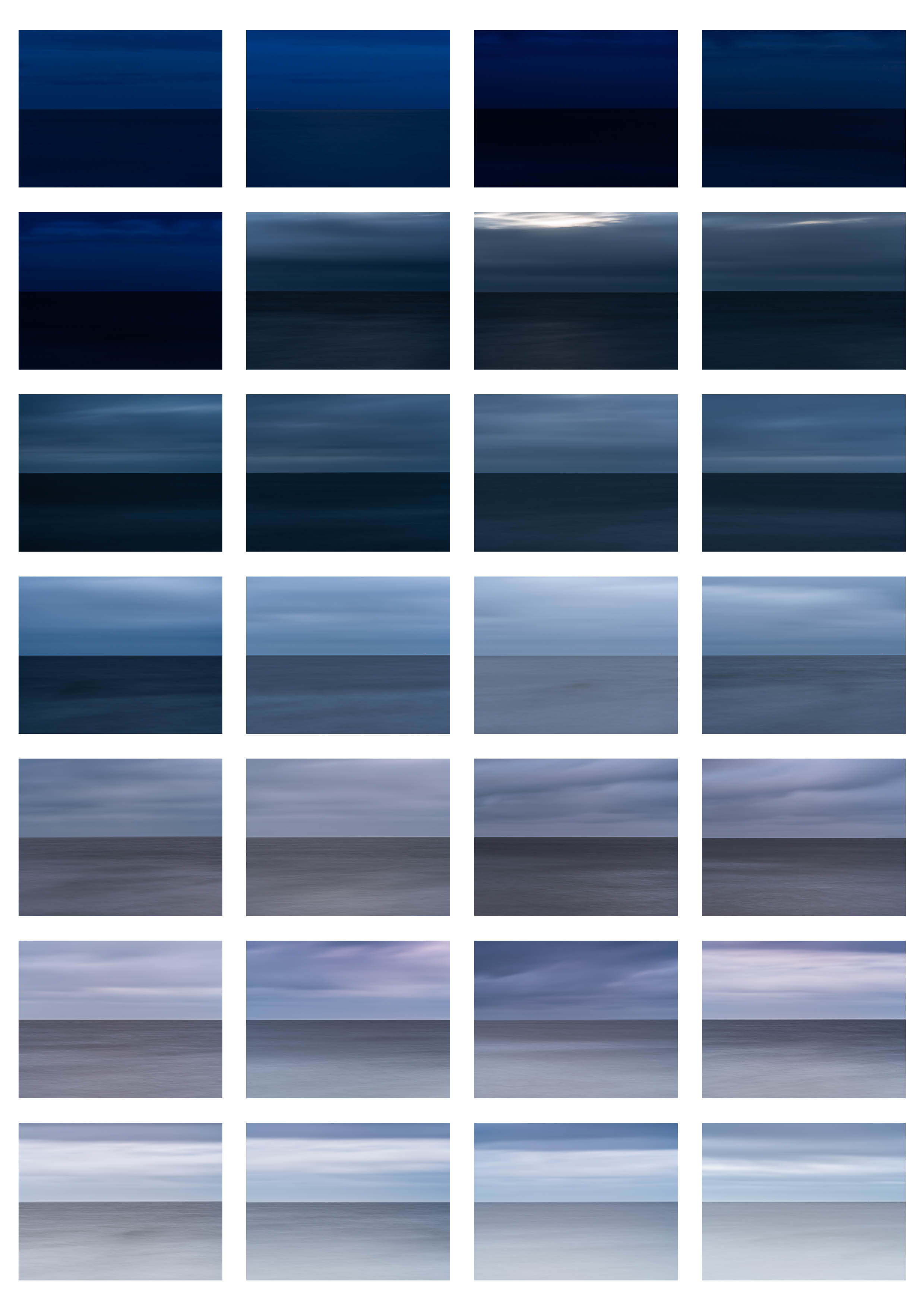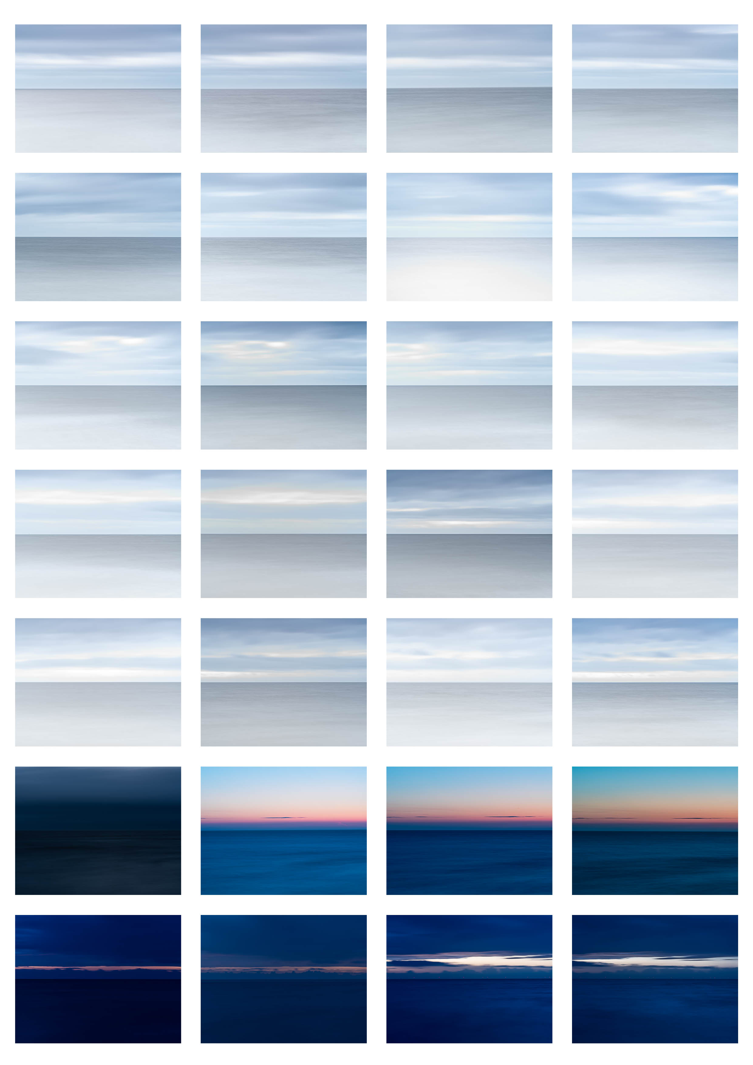 This was inspired by Hiroshi Sugimotos “Seascapes”. I love his work, which for me has a powerful quietness to it. There’s also reference to Mark Rothko and the expressionist painters who use colour and a simplicity of form to evoke emotion. In my final selection I have incorporated a lot of blue because of it’s associations with melancholia and spirituality.