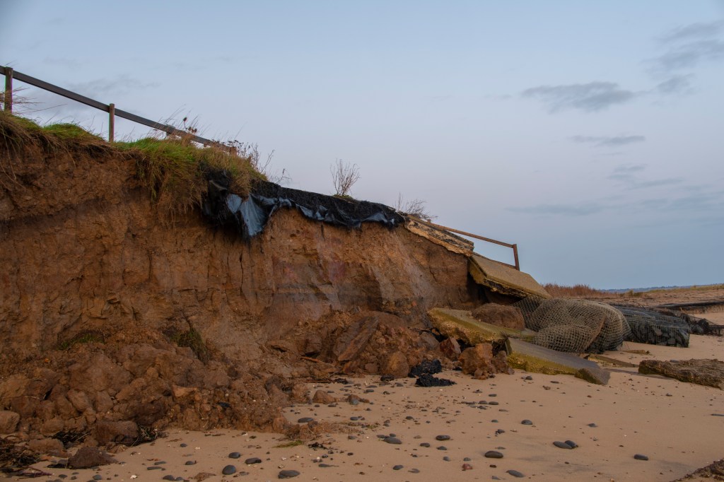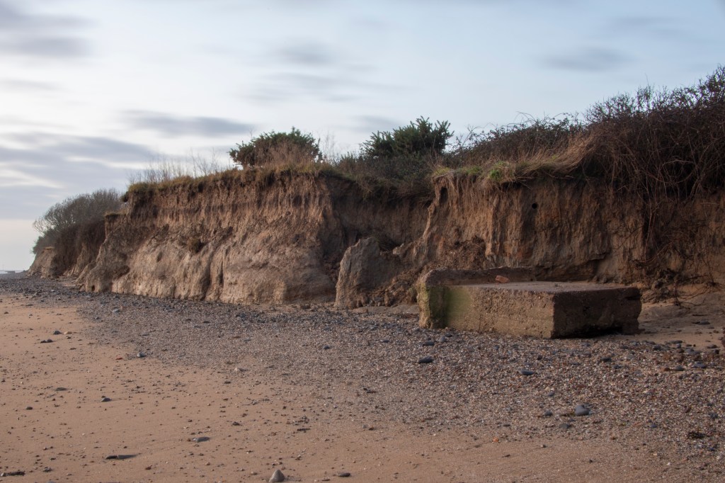 The most poignant image for me was the bench where someone had tied a bunch of flowers to it obviously as a memorial. I thought the image (albeit a quick snap in passing) had a beautiful and yet very sad feeling to it which evoked memories of a couple sitting viewing the sea, maybe holding hands. I was also inspired by the cliff erosion at Walton and considered that as something to explore, when the tide was out!
