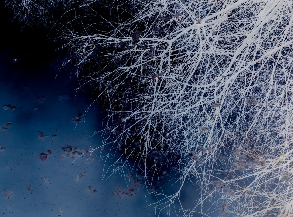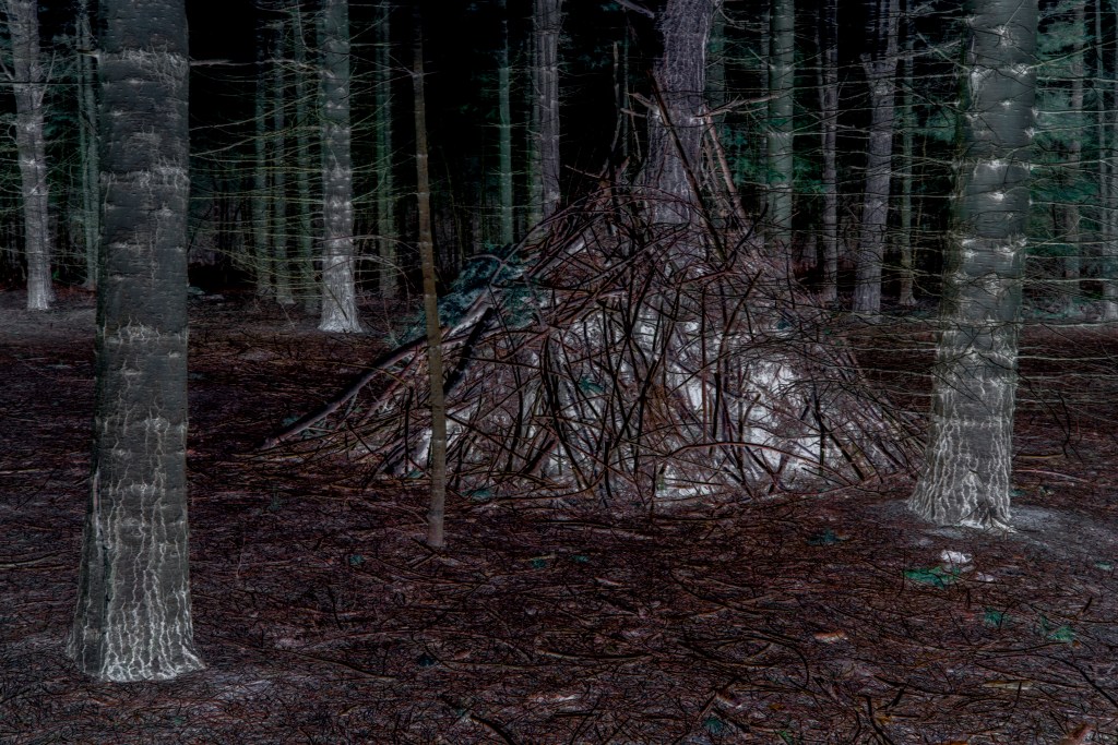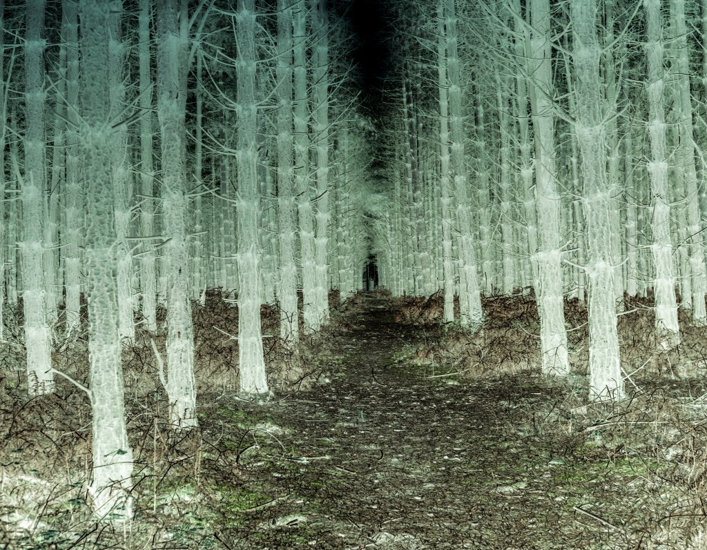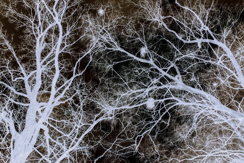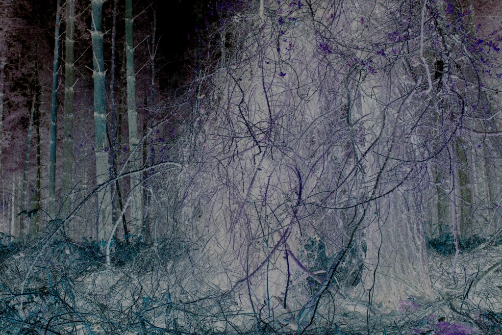 After looking at Dan Holdsworth’s Blackout, I’d had the idea of inverting the colour of my images. I guess this was to challenge our notions of ‘the shadow’, good and evil so to speak. What I found was that some of the images worked really well such as the inverted image below for example. The white branches are reminiscent of bony fingers stretching out.