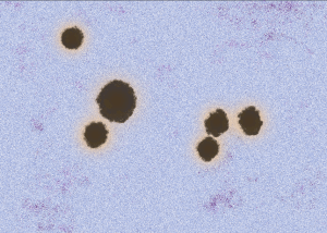 What I keep seeing is images of the virus itself, on the news for example, actually the image is everywhere. Either it is grainy microscope images or a digital model for the virus. I decided I wanted to create some images in Photoshop to use as overlays/layers for Assignment Six. If nothing else, then it’s a creative activity that should ‘take me somewhere’.