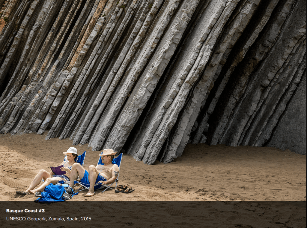 There is a certain beauty though to the human structures that Burtynsky has photographed which often ape the formations and patterns of nature however they also represent a state of over population, pollution and a situation which is unsustainable. In particular, Burtynsky references ‘deep time’ and the geological formation of our plant. I chose the image above as I found a certain irony in the sunbathers with their backs to this stunning natural rock formation and the fact that this was a ‘geo-park’, something that seems to relate to human arrogance.