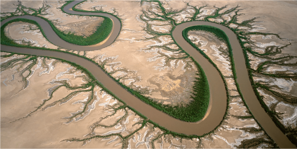 These images are aerial photos of Australia. Woldendorp expresses how taking the photos has heightened his appreciation of the diversity of the Australian landscape. Whilst the images appear abstract, they are real photos of the earth. What he presents are these wonderful patterns that occur in nature.