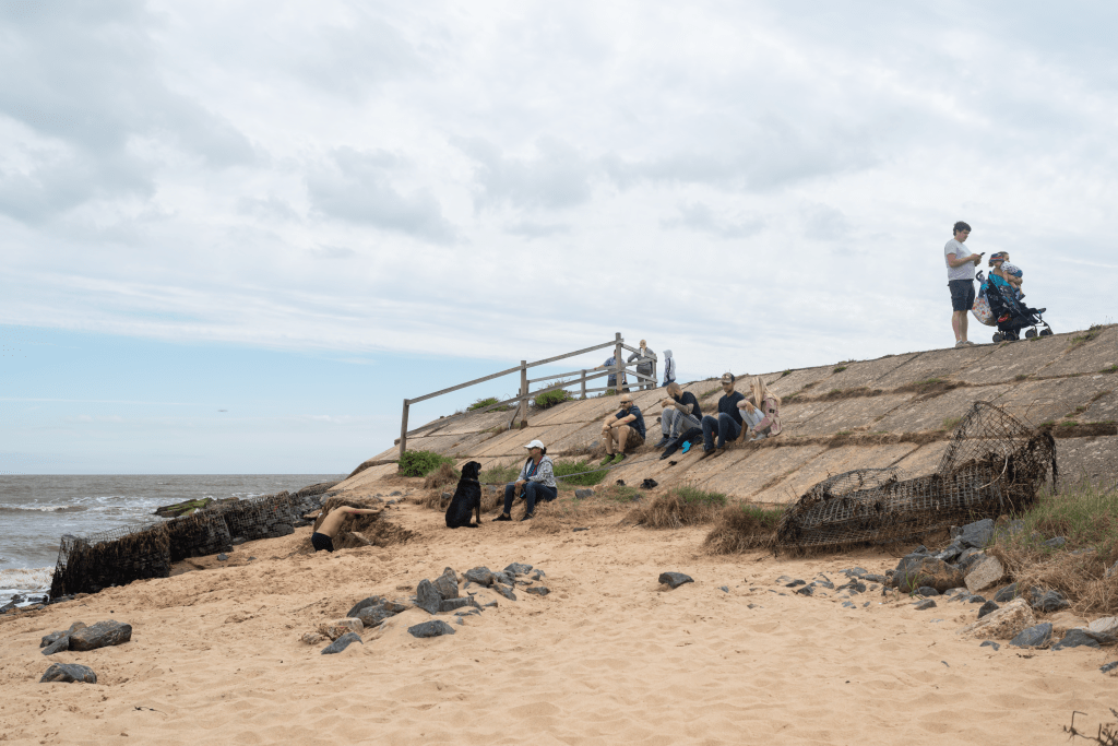What the images represent are the layers of time and the shifting of the landscape through various climatic events. My first thought for this assignment, was to pair geo-aesthetic images with images of the fossils found on Naze beach. However, I have also been observing the people who visit the beach. Whilst there’s the regular dog walkers, most people are looking for fossils. I took the image below having looked round whilst trying to photograph the second world war lookout post on the beach. I’m not sure how technically good it is but I like the fact that if you zoom in there is so much activity going on.