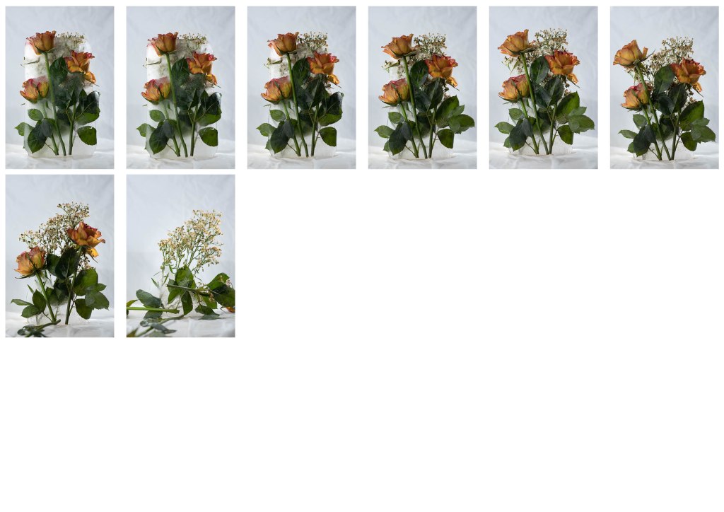 I have some reservations about this work as I’ve stretched the brief a little. However I think the images work. There’s something a little bit disturbing in the way the images begin ‘beautiful’, and as the ice melts and the flowers degrade and fall.