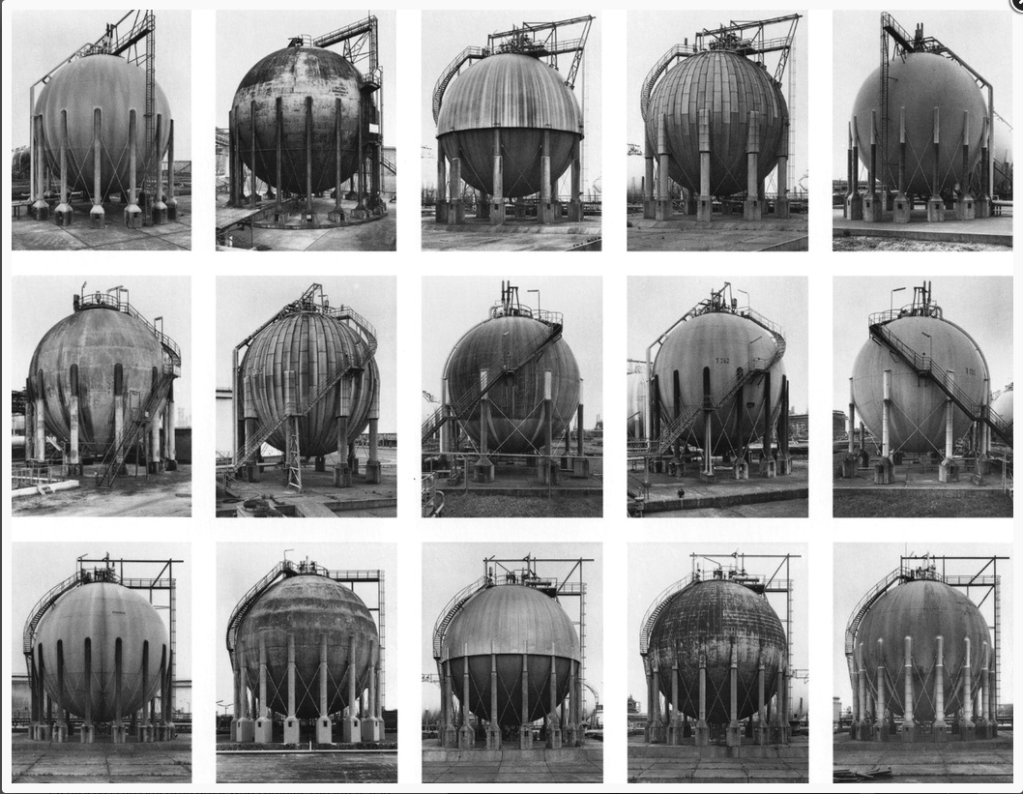 A Typological photo series tends to be presented in a grid like form. The Becher’s spent thirty years creating works of “anonymous sculpture” of industrial forms. This approach draws on “the scientific objectivity of photographic evidence” (PhotoPedagogy. n.d.).